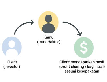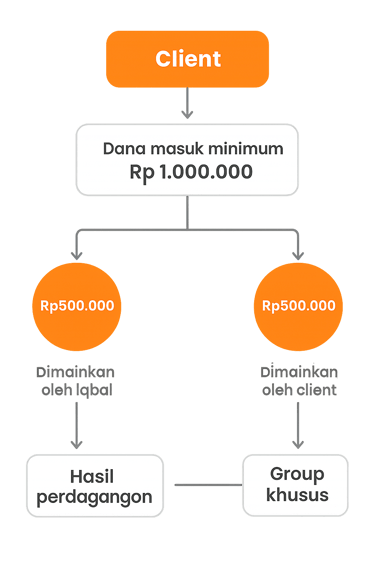 Dari Rp500.000 yang dimainkan Iqbal → hasilnya bagi sesuai kesepakatan (misalnya 70% untuk client, 30% untuk trader).